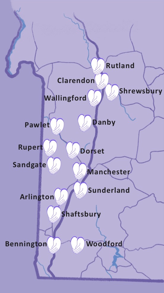 Southwestern Vermont towns covered by Hand to Heart Project